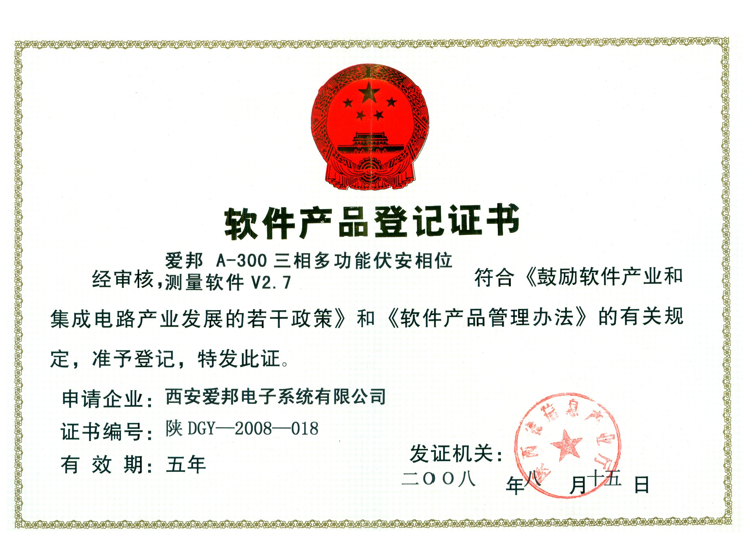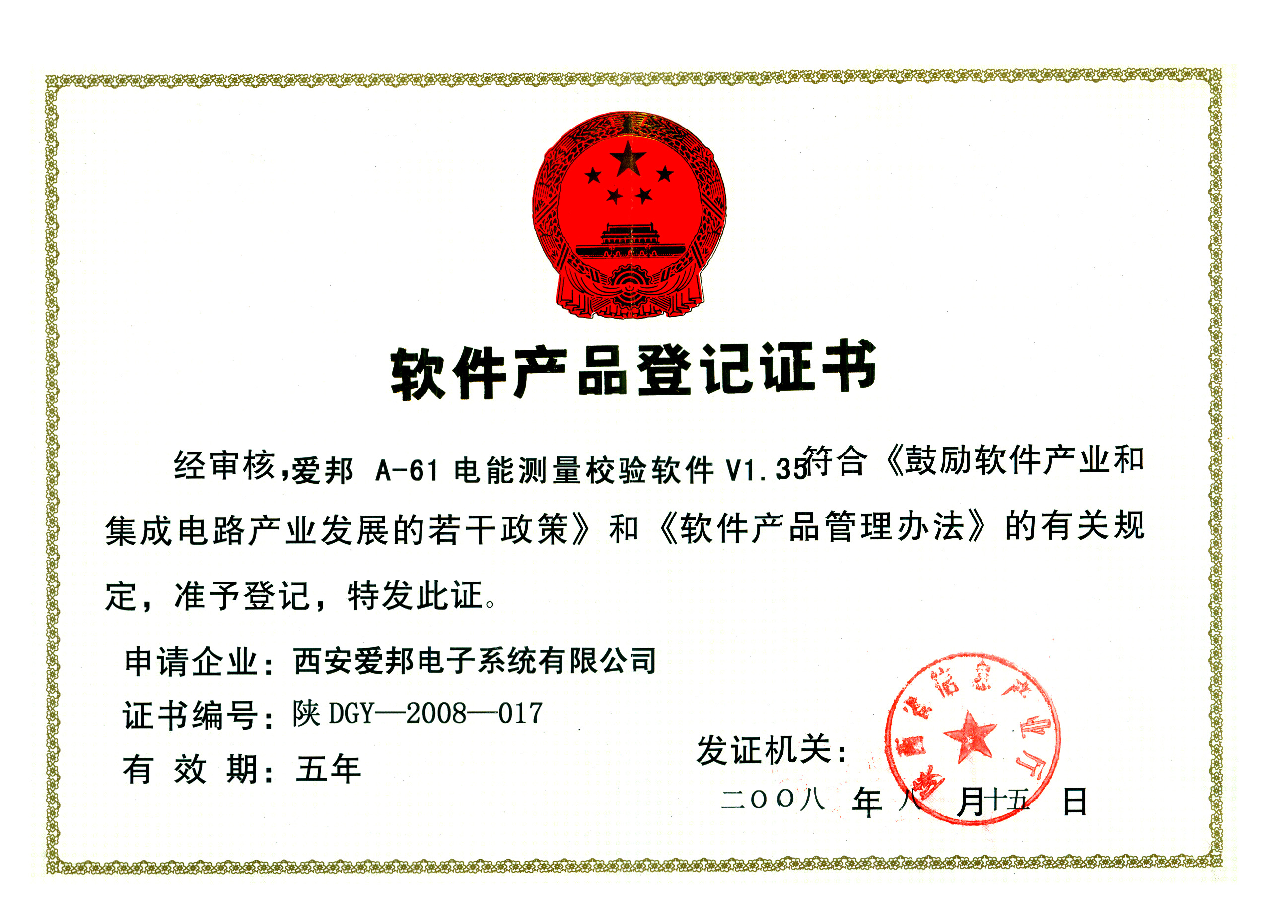 • 軟件產品登記證書